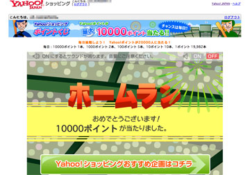 ポイントくじを引いて、いつものように当たり外れの結果が判明したらすぐ